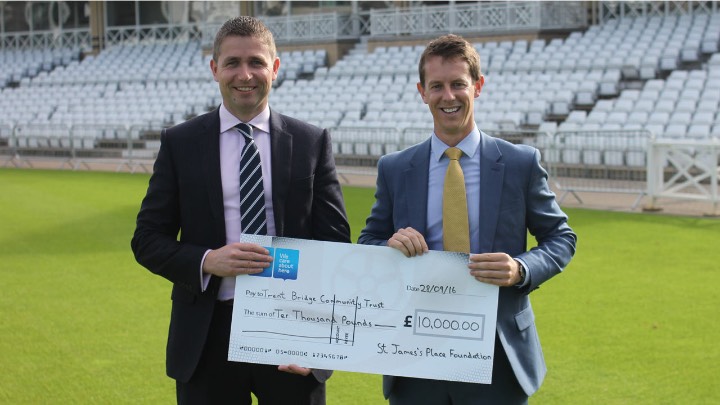 The St. James’s Place Foundation, which has raised funds for children’s charities totaling over £50 million in the past quarter of a century, has made a £10,000 donation to the Trent Bridge Community Trust.