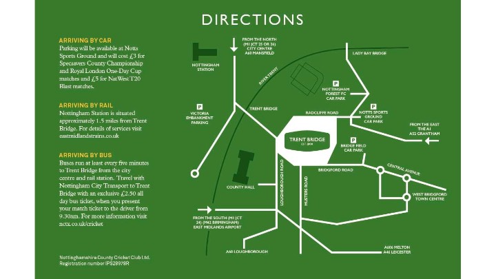 The ground is approximately a 15-minute walk from Nottingham Train Station towards West Bridgford and over the bridge, with regular buses also taking the route.