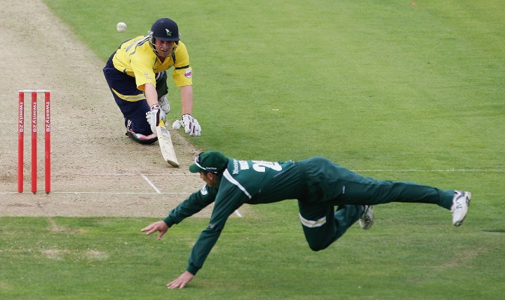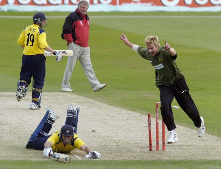 Richard Logan runs out Michael Lumb in the 2004 fixture.