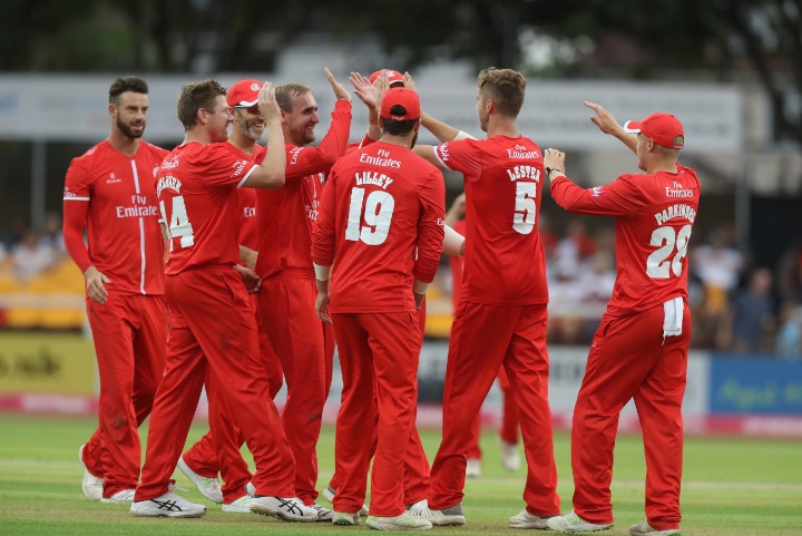 Lancashire celebrate a wicket in their victory over Leicestershire.