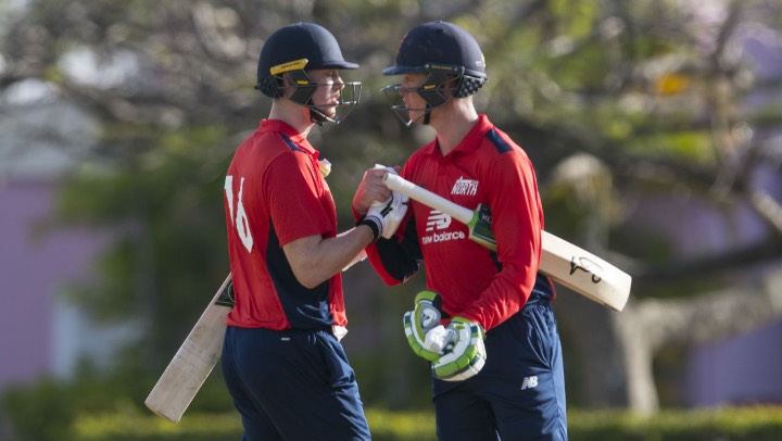 The latter then shared a second-wicket stand of 99 with Sam Hain (57 form 53 balls) in scoring a superb century and finishing on 127 from 106 balls before being retired out by North Coach Paul Collingwood.