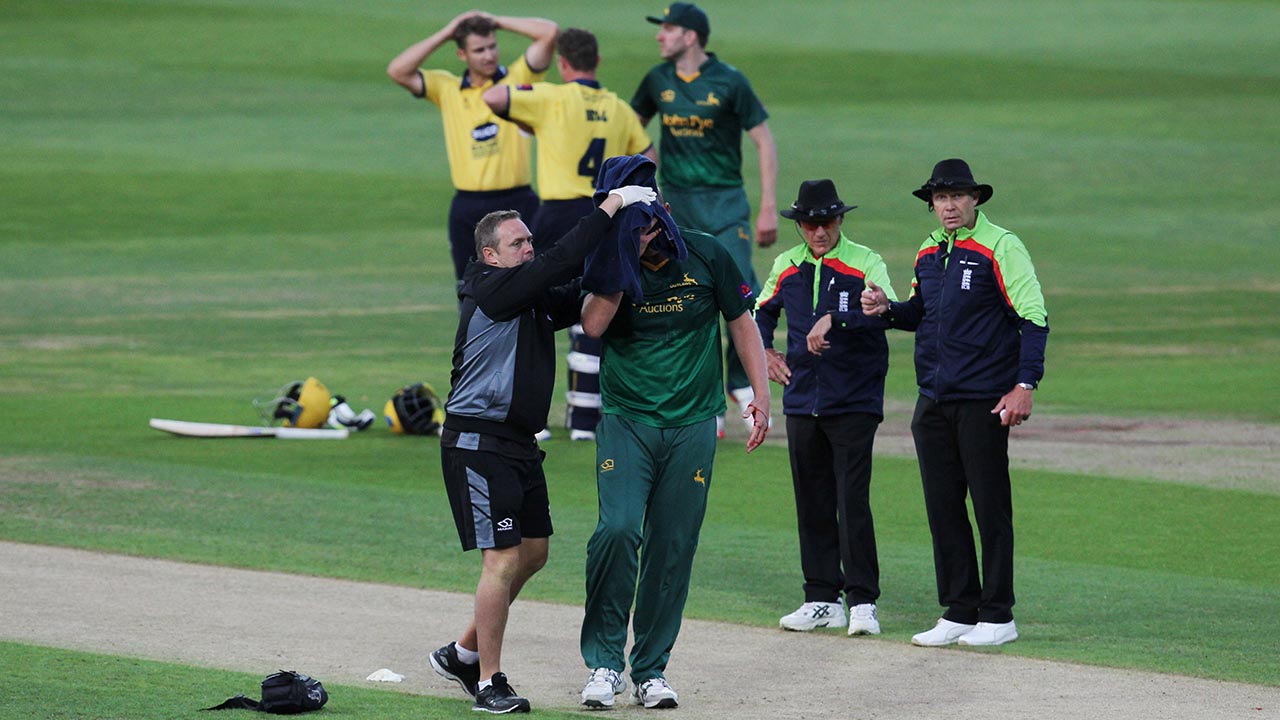 Birmingham Bears won the match – but that was all over-shadowed by a nasty head injury sustained by Luke Fletcher, struck when bowling, after a fierce return drive by Sam Hain hit him flush on the skull.