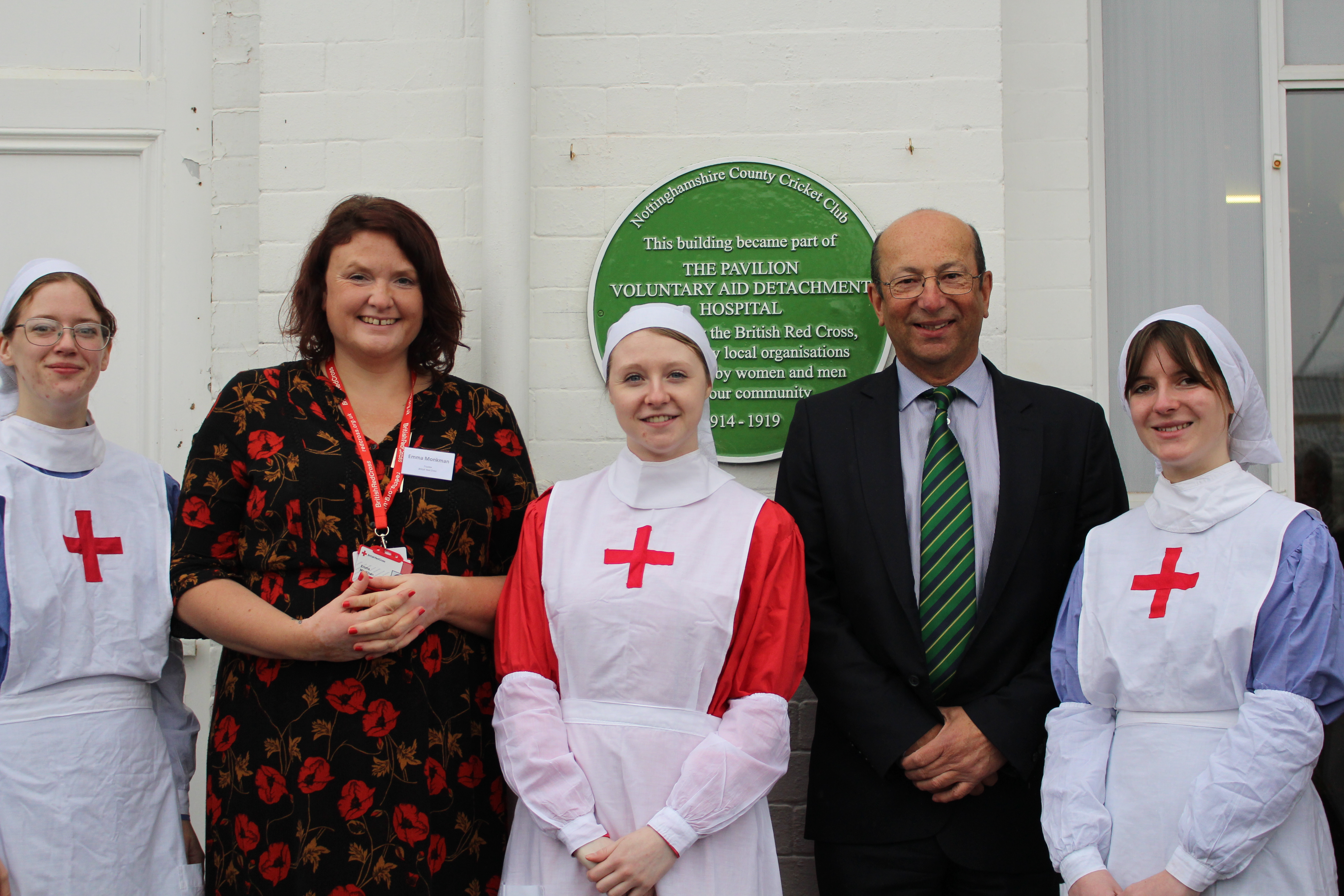 Trent Bridge's World War One heritage group have brought down the curtain on their project to remember the role of the club during the conflict by unveiling a plaque commemorating the use of the Pavilion as a hospital.