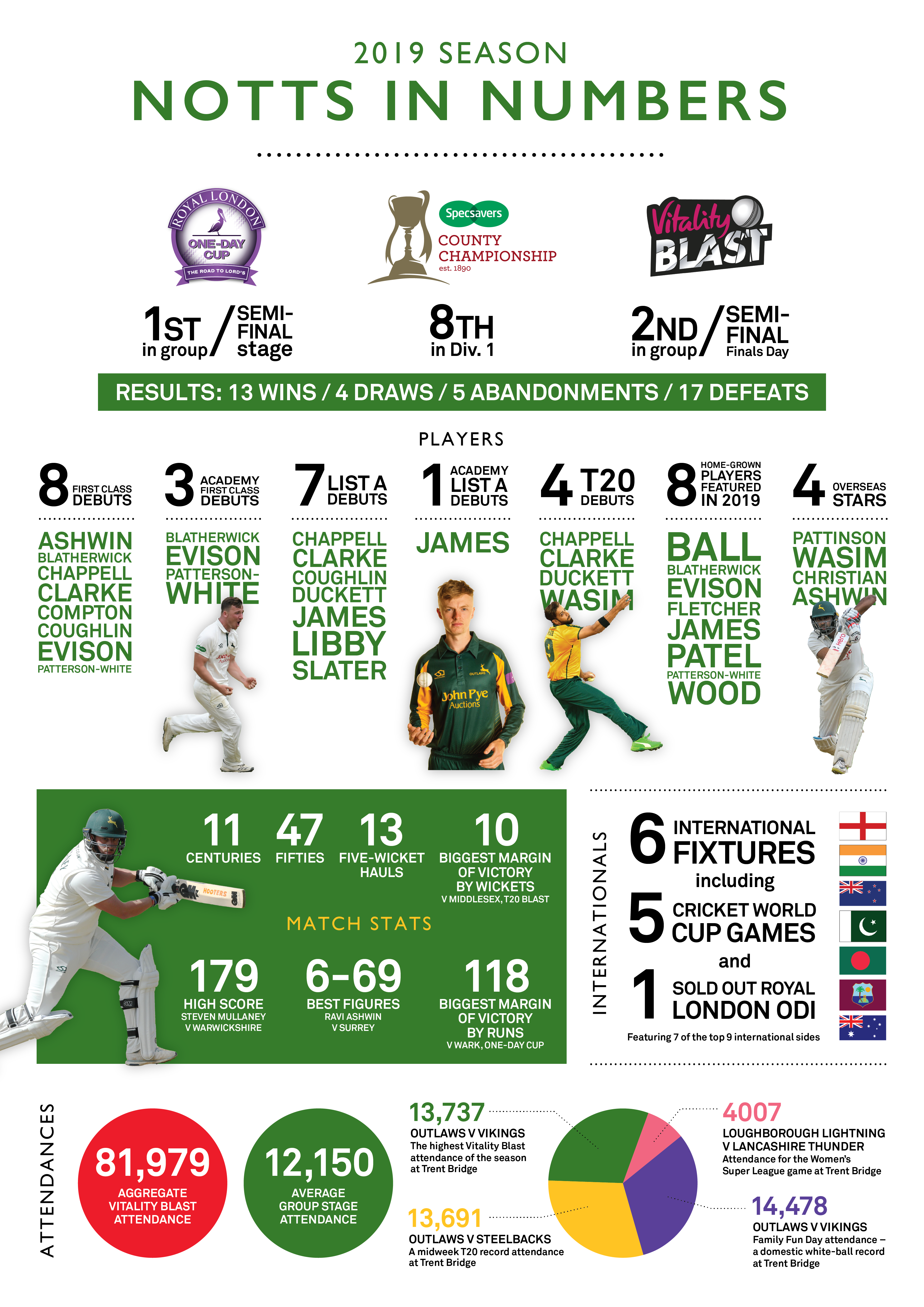 Semi-final heartbreak, County Championship relegation, record crowds, Academy debutants and the ICC Cricket World Cup - these are the key numbers behind 2019 for Notts and at Trent Bridge.