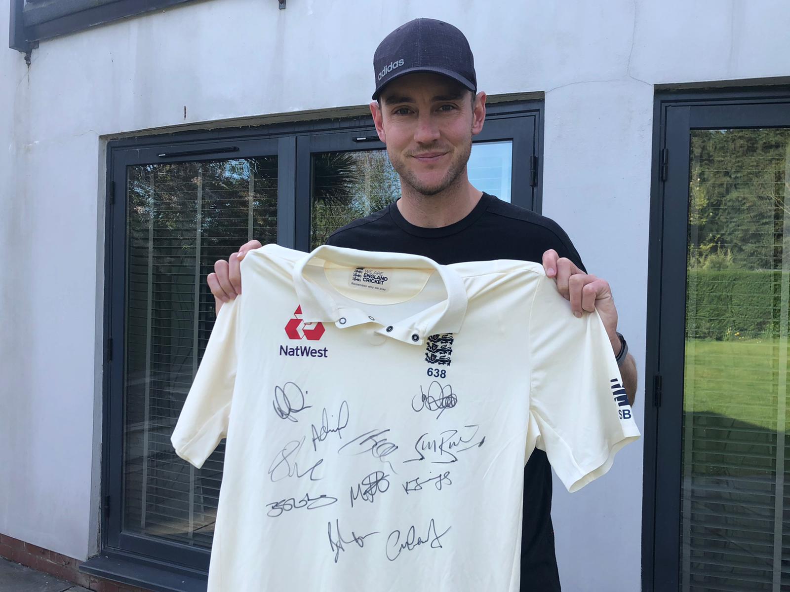 An England Test shirt worn by Stuart Broad and signed by the team will be amongst the items up for auction.