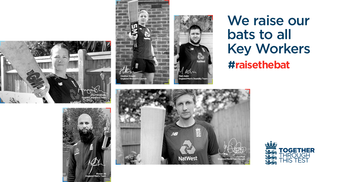 Thank you to all the keyworkers in the cricket family for everything they've been doing during lockdown #RaiseTheBatpic.twitter.com/Wuv6gSd3Mv