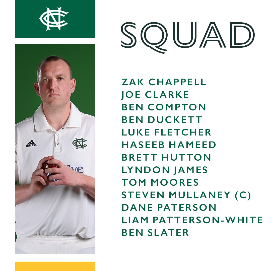 Notts have named a 13-man squad for the fixture, which begins on Friday 2 April.