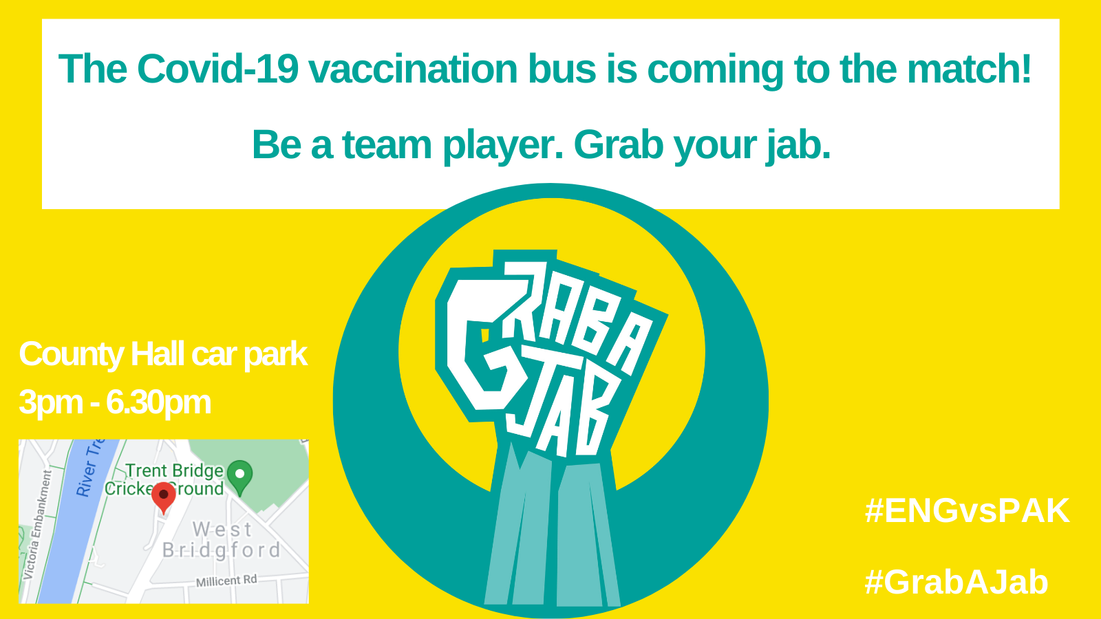 *Kindly note that those who grab a jab on the matchday will still be required to take a lateral flow test within 48 hours of the fixture and demonstrate a negative result via one of the approved methods. The gates of Trent Bridge will open at 4.30pm. The match gets underway at 6.30pm.