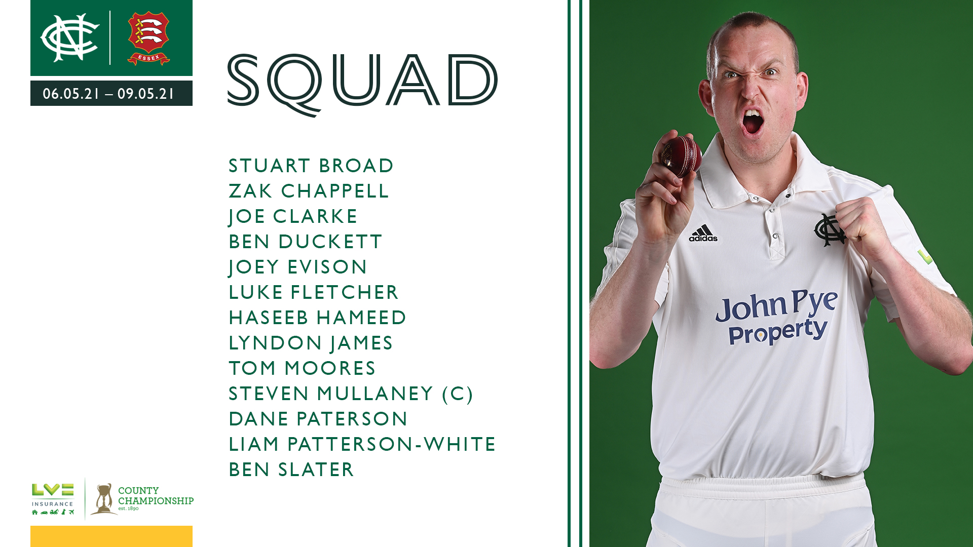 Nottinghamshire welcome Essex to Trent Bridge this weekend for an LV= Insurance County Championship encounter between 6 and 9 May - a fixture you can watch live at trentbridge.co.uk/live.