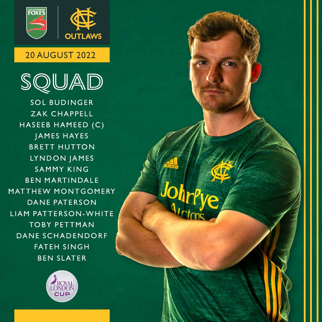 The 23-year-old retains his place in the 15-man squad set to face Leicestershire Foxes at the Uptonsteel County Ground (Saturday 20 August, 11am).