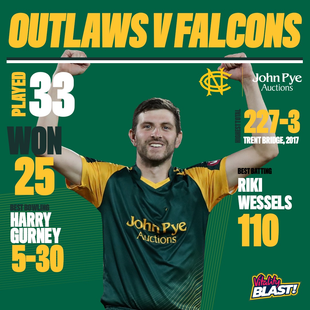 Thursday 23 June, Notts Outlaws vs Derbyshire Falcons: Secure your seats…
