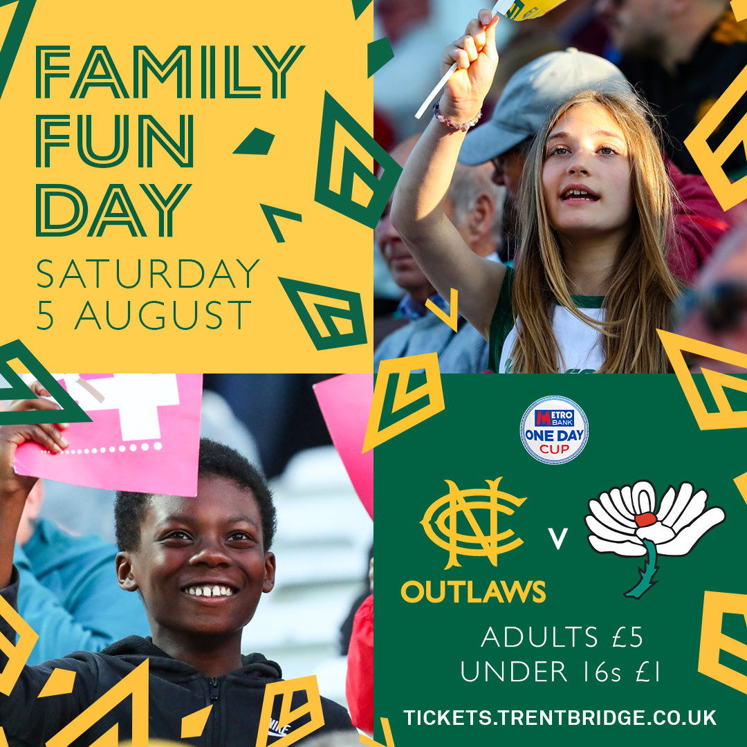 Notts begin their Metro Bank One Day Cup campaign on Thursday 3 August away at Essex Eagles, before hosting Yorkshire on Saturday 5 August at Trent Bridge for a Family Fun Day.