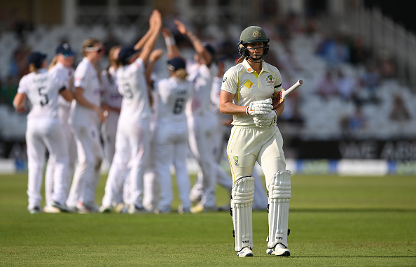 Ecclestone’s angled delivery straightened past the edge of the Australia vice-captain, the Three Lions reinvigorated with the hope of quick wickets.