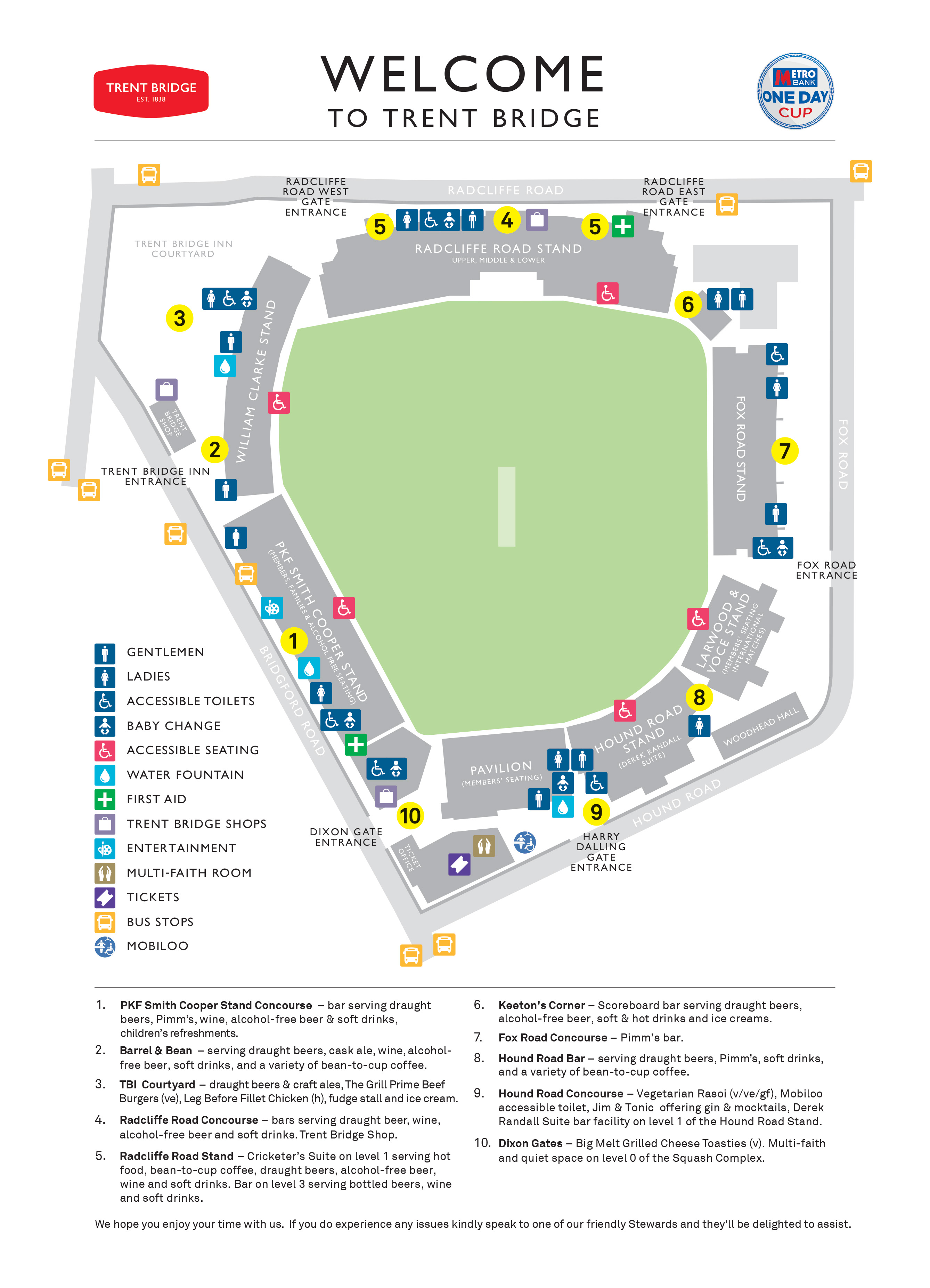 If you think you'd like any assistance on the day, would like to talk to someone to help plan your visit, or are attending with an assistance dog, please email info@trentbridge.co.uk