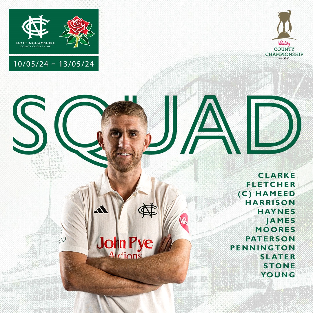 He forms part of the 12-man squad to face Lancashire at Trent Bridge on Friday (11am start), the Green and Golds hopeful of earning a first victory of the campaign after a promising all-round performance in Warwickshire.
