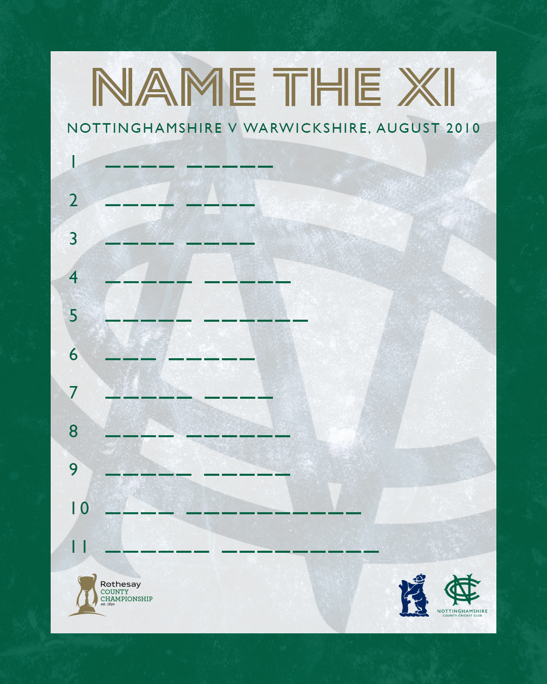 As Nottinghamshire hit the road for the first time in this season's Rothesay County Championship, we are again offering you the chance to put your knowledge to the test.