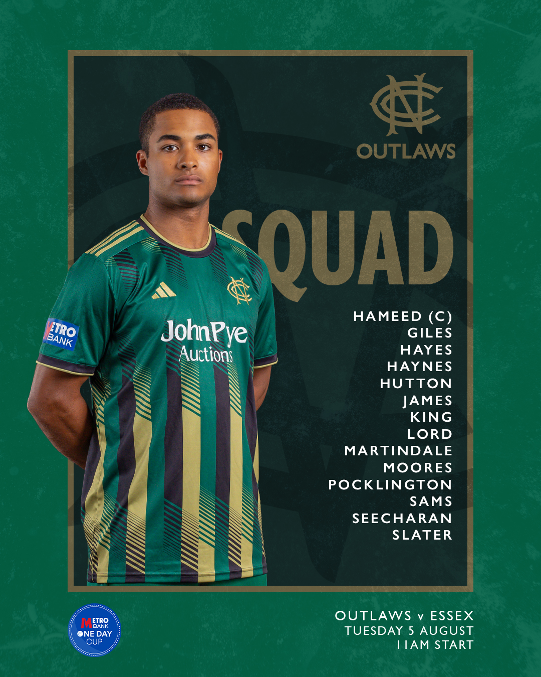 A 14-man squad has been named for the Outlaws' first List A clash of the summer.