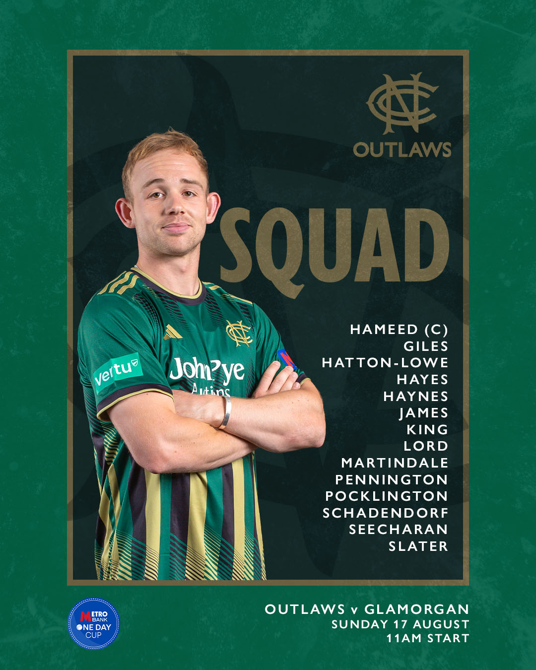 An additional change within the squad sees Dane Schadendorf replace Tom Moores, who was called up to Trent Rockets for their clash in The Hundred at Trent Bridge this weekend following injury to Tom Alsop.