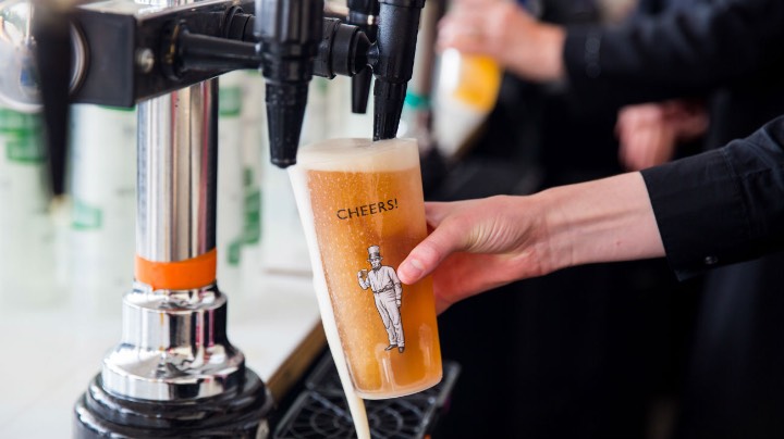- Bars serving draught beer, alcohol-free beer, soft drinks and wine by the glass.