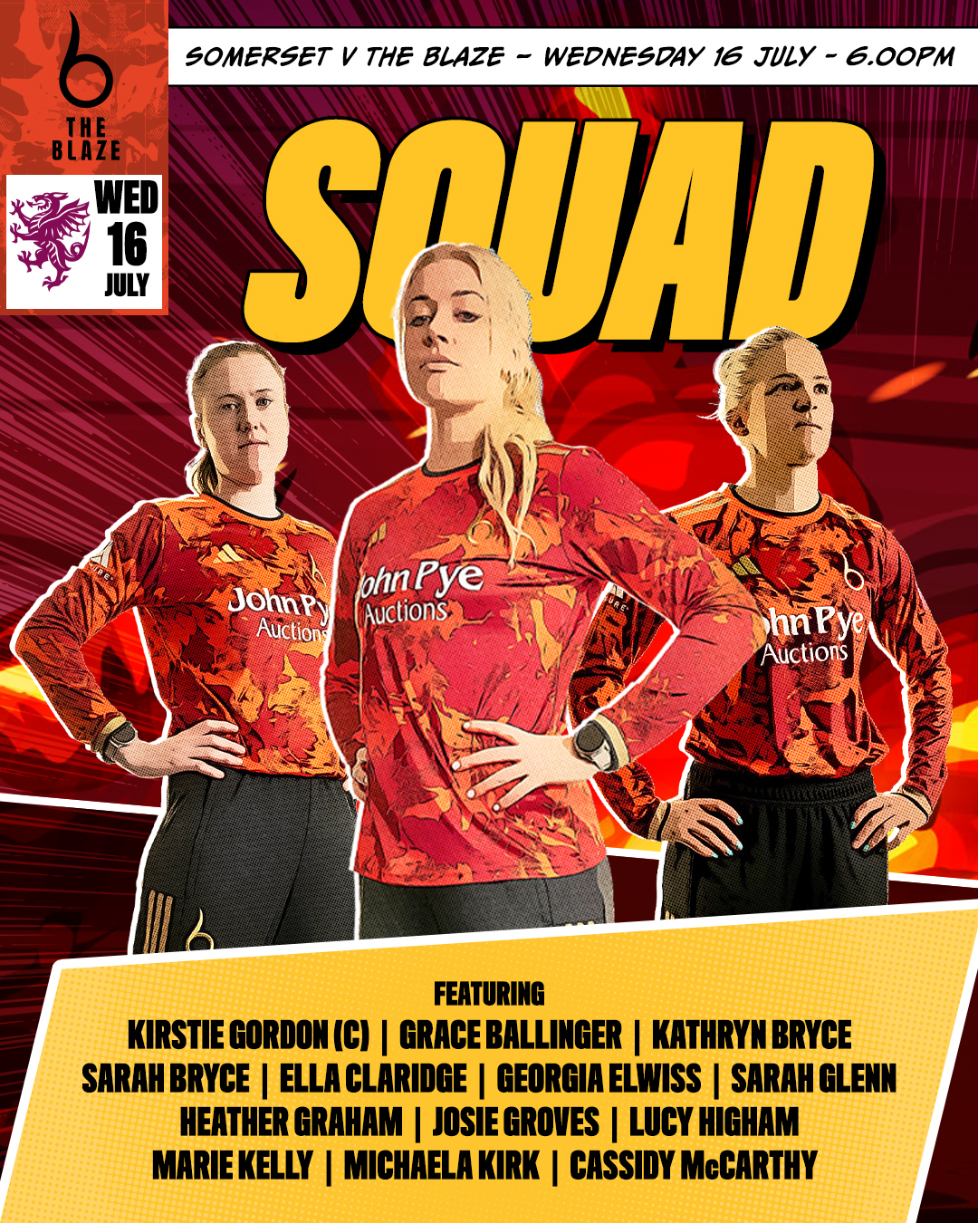 Bryce has been included in a squad of 13 for the trip to Taunton, which is an unchanged party bar the recently Hundred-selected Charley Phillips dropping out.
