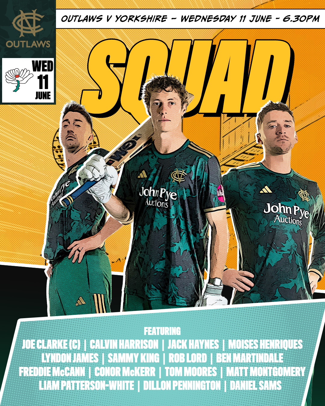 The visit of Yorkshire to Trent Bridge on Wednesday, 11 June (6:30pm start) kicks off a run of three games in four days for the Outlaws.