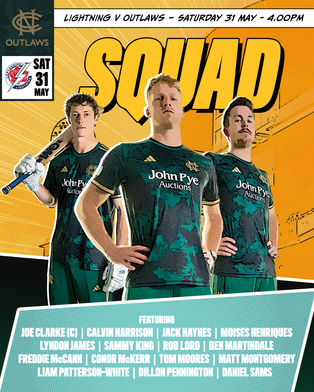 He now joins his fellow Outlaws in travelling to Emirates Old Trafford to face Lancashire Lightning (Saturday 31 May, 4pm).