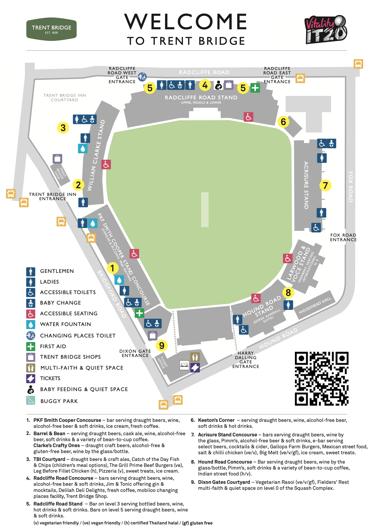 A limited number of Trent Bridge sensory bags will be available to borrow for the duration of the match, which can be collected from the Radcliffe Road Reception or the ticket office.