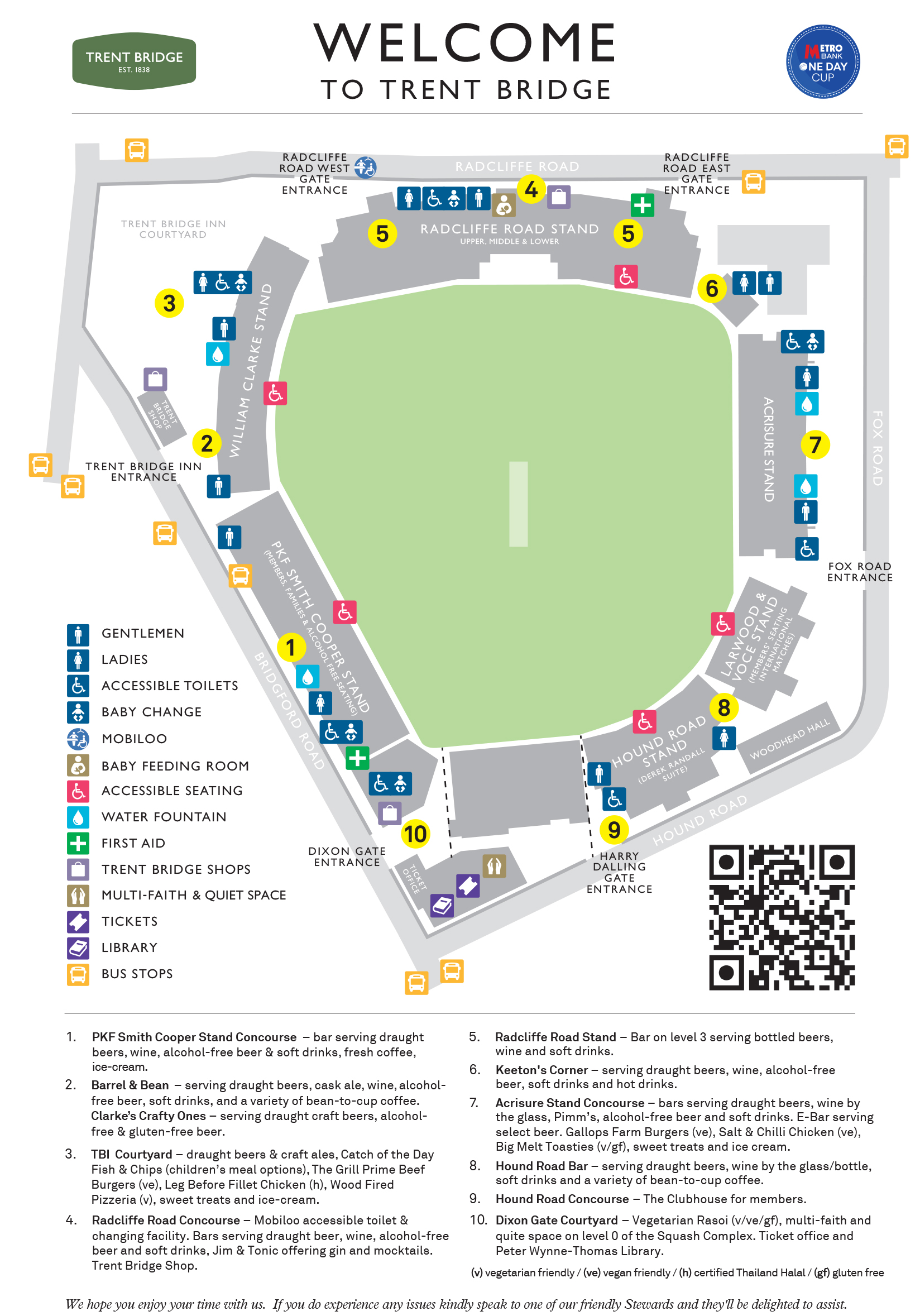 If you think you'd like any assistance on the day, would like to talk to someone to help plan your visit, or are attending with an assistance dog, please email info@trentbridge.co.uk