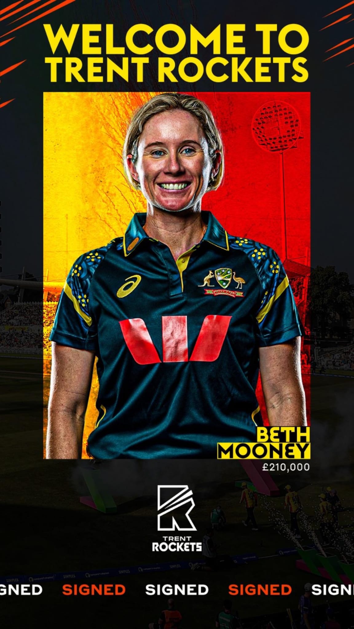 The sought-after signature of Beth Mooney is secured by the Rockets, but only after an intense bidding war between Trent Rockets and Manchester Super Giants.